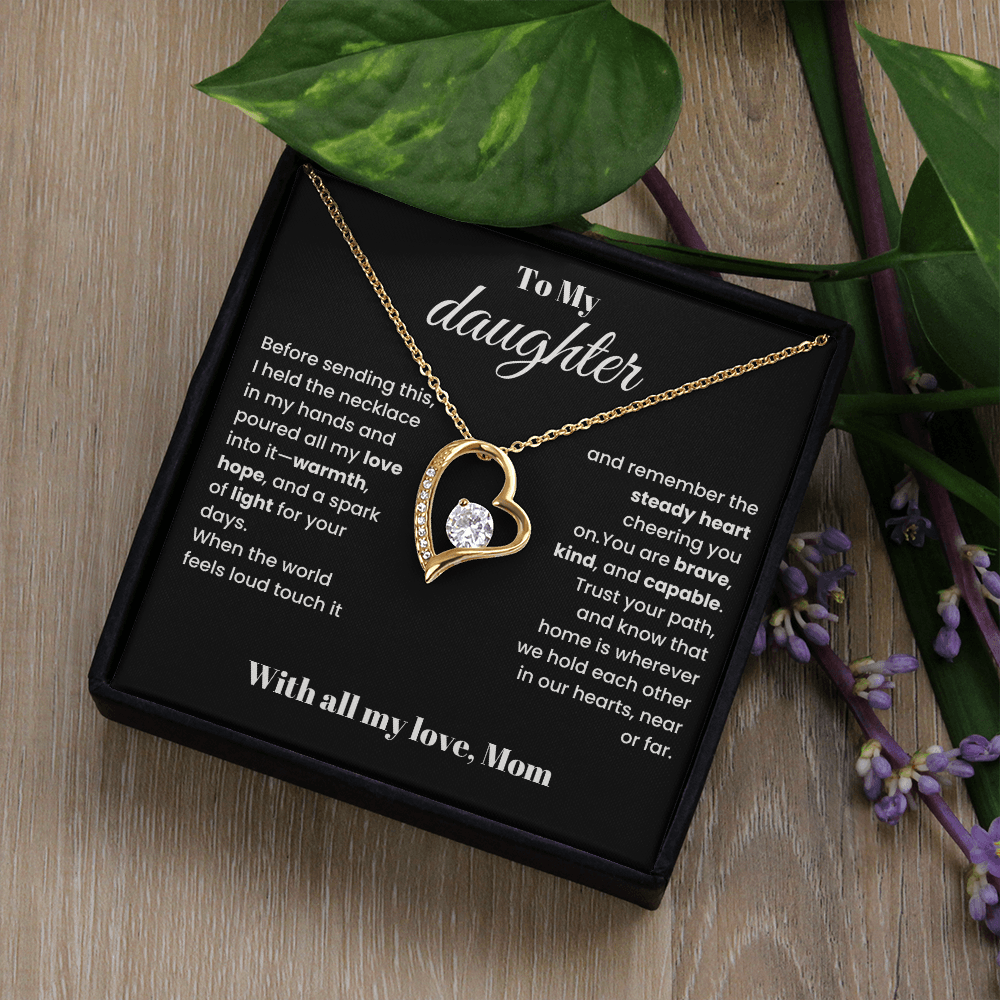 Before sending this, I held the necklace in my hands and poured all my love into it—warmth, hope, and a spark of light for your days. When the world feels loud, touch it and remember the steady heart cheering you on. You are brave, kind, and capable; trust your path, and know that home is wherever we hold each other in our hearts, near or far.